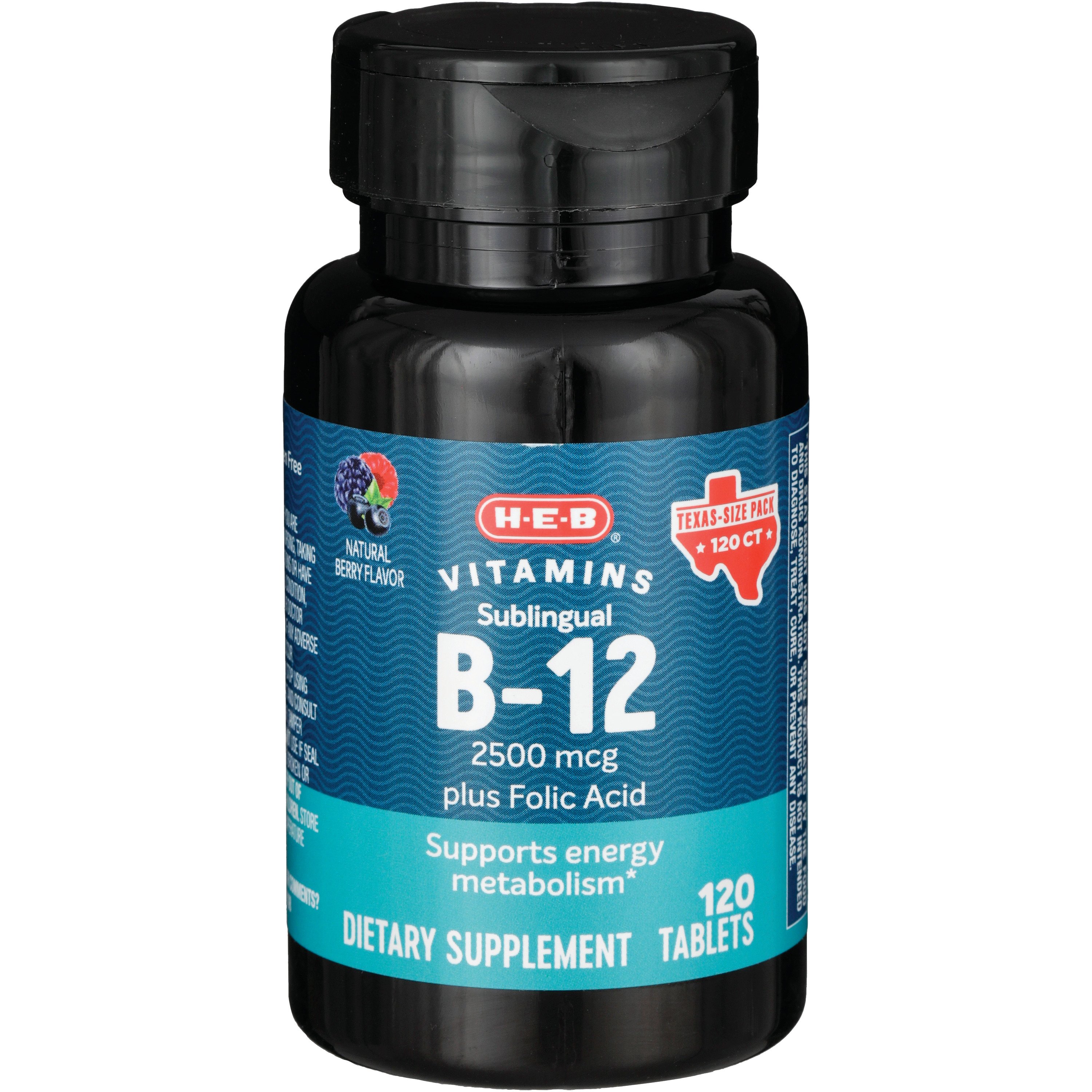 HEB Vitamins Sublingual B12 plus Folic Acid Tablets 2,500 mcg